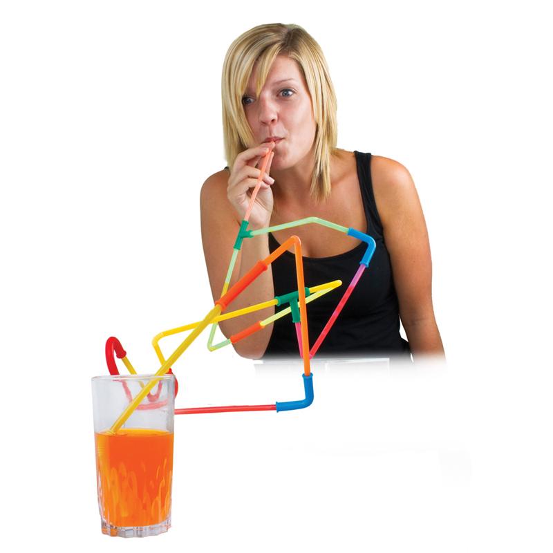 Netradiční brčka a spojnice tvoří zábavnou brčkovou stavebnici, která má nespočet variant. Celkem najdete v balení 40 dílů trubek a kloubů a protože některé klouby spojují nejen dvě, ale také 3 a 4 brčka, můžete vytvořit kolosální brčko míchající více nápojů do jednoho přímo v brčku. Jinou variantou je zase brčko sestavené tak, aby mohli tři lidé pít ze dvou nápojů současně. Brčka nebo trubice nejsou na jedno použítí. Jsou hodně pevná a vydrží toho dost včetně mytí v myčce.