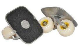 Duo Skates jsou dva naprosto nezávislé "skaty". Každý má dvě měkčená kolečka a skvělou protiskluzovou úpravu. Pokud se jízdě na nich budete chvíli věnovat, nebude pro Vás problém jet jenom po jedné části a druhou si třeba za jízdy vyměnit s kamarádem.Triky, které můžete dělat s Duo Skates Vám běžný skate nedovolí a samozřejmě taky naopak.