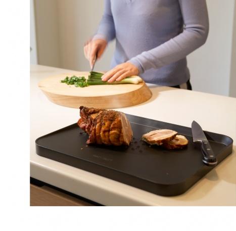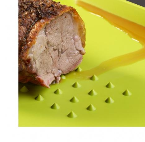 Dvojstranné multifunkční prkénko má sklon, které svádí tekutinu k odtokové hraně. Z jedné strany je předmět opatřený protiskluznými jehlanovitými výstupky pro snadnější krájení masa a z druhé strany je hladké. Prkénko je vyrobené z kvalitního polypropylenu.