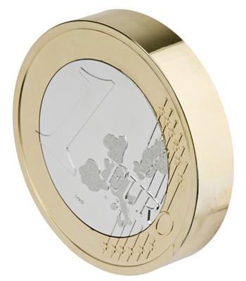 Rádi bychom Vám nabídli zvětšeninu naší jednokorunové české mince, ale jaksi není po světě tak známá, aby se její vyroba vyplatila. Pokud tedy nejste fanoušek Václava Klause a spolu s ním i další euroskeptik, snad Vás potěší Euro Zarážka. Zarážka má 12 cm v průměru a 2,5 cm na výšku a je vyrobena stejně jako originál ze dvou barevných kovů.