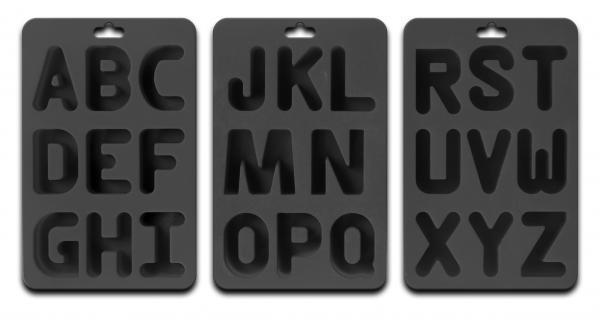 Forma na led - písmena představují silikonové formy mající písmena od A do Z. Velikost každého písmena je 11,5x18x2 cm. Formy jsou vhodné nejen a led, ale i na želatinu. Oživte i vy svůj večírek.