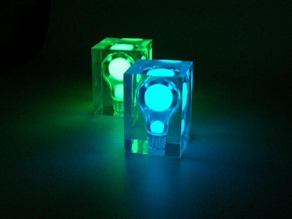 Máte rádi barevná světla, která prozáří černou noc? Máme pro vás fosforeskující žárovku - modrou od designové společnosti Suck Up. Jde o plný akrylátový kvádr. Uvnitř je žárovka vyplněná fosforeskující substancí. Lampička je dobíjená slunečním světem a měří 11 x 8 x 8 cm. Dopřejte si i vy více noční atmosféry.