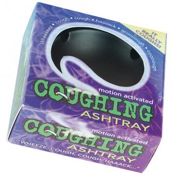 Kašlající popelník se na první pohled neliší od klasického popelníku. Pokud k němu ale přiblížíte zapálenou cigaretu, ihned začne ošklivě kašlat, čímž se vám snaží naznačit, že kouření je Váš zlozvyk, nikoli jeho.