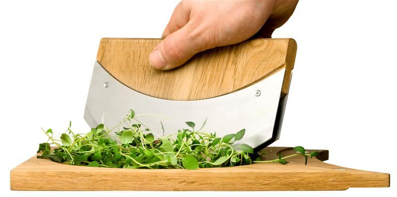 Prkénko magneticky spojené s nerezovým kráječem bylinek. Materiál prkénka: dub. Povrch dřeva ošetřen olejováním. Výrobek nemyjte v myčce, nesušte na topení. Jako prevenci před vysycháním a praskáním pravidelně olejujte.