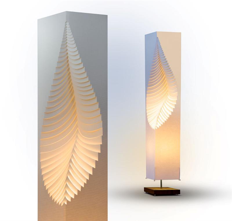 Leaf 110 představuje lampu přírodního organického tvaru, která vzbuzuje pocit pohody z náladového osvícení. Její stínidlo je vyrobené ze speciálního odolného laminovaného MooDooNano papíru. Můžete si ji zvolit s drátěným či dřevěným stojanem. Dřevěný stojan je z exotického dřeva iroko.