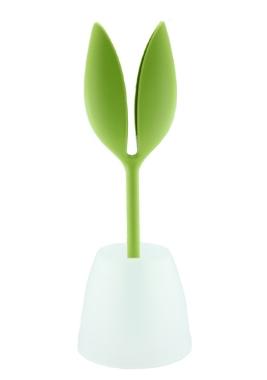 Leaf Holder má oku libý tvar a příjemnou zelenou barvu. Odolný plast vydrží i hrubé zacházení, což není od věci. Na našem stole v něm máme telefon a dole tužky. Pokud v něm tedy chcete mít telefon nebo dálkové ovládání od televize, je na to připravený. Vyzkoušeli jsme jej. Sestavený má na výšku 24 cm a v nejširším místě 9 cm.