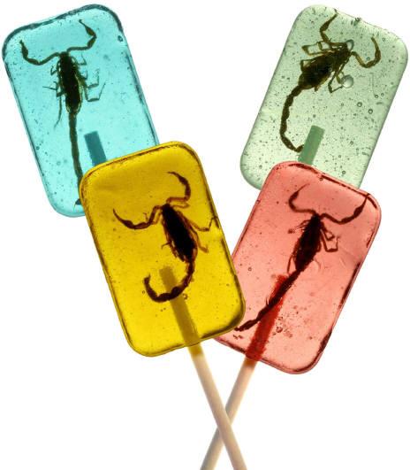 Originální lízátko obsahuje pečeného škorpiona zbaveného nežádoucích jedů, který je tak určený ke konzumaci. Doporučujeme jako netradiční dárek pro slečny se zálibou ve sladkostech nebo pro malé děti, aby se naopak jejich konzumace sladkostí omezila.