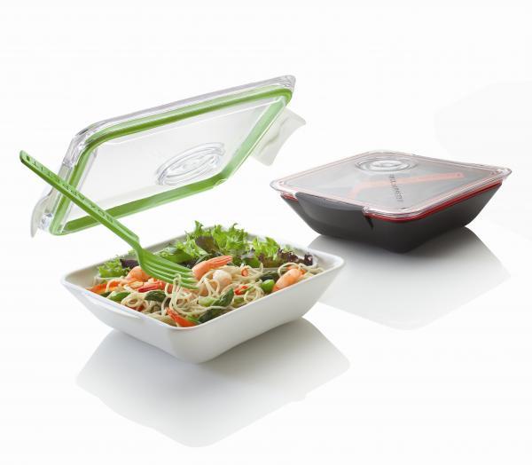 Mnohem snadněji se vám bude manipulovat s pokrmy, budete-li na ně mít lunch box - zelený od designové společnosti BLACK-BLUM. Lunch box představuje plastovou misku s vnitřními uzavíratelnými miskami a vidličku. Rozměry misky jsou 19x19x5,5 cm. Hodí se i pro ohřev v mikrovlnné troubě.