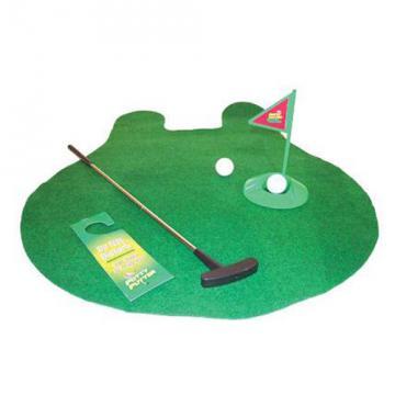 Golf se často označuje jako hra bohatších vrstev. Díky nám si ale golf může zahrát opravdu každý! Sada Golf na WC je speciálně upravena tak, aby jste ji mohli hrát během návštěvy záchodu. Malý hrací trávník má jednu stranu uzpůsobenou tak, aby přesně pasovala k noze záchodové mísy.