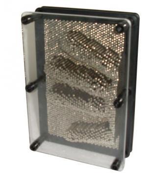 Pin Art je nikdy nekončící zábava. Umožňuje vám vytvořit nespočetně mnoho modelů, a to jak ve volném čase, tak i v pracovní době! Vytlačte své jméno či otiskněte svoji tvář. Dokonce můžete otisknout i cizí tvář (nezapomeňte ale vždy počkat na souhlas!). Celá procedura trvá pár vteřin a pokud si budete přát změnit výtvor, stačí jen ocelové otisky otočit lícem dolů a povrch se sám vyrovná.