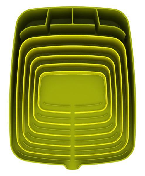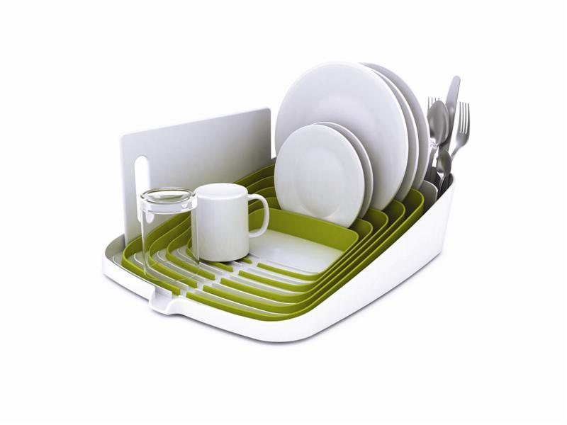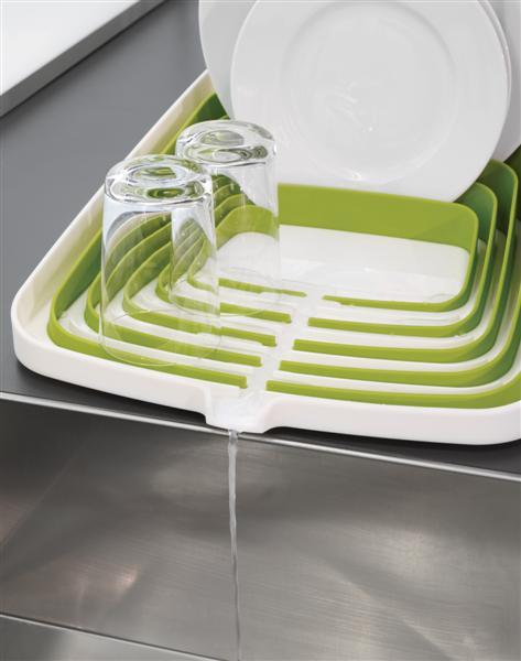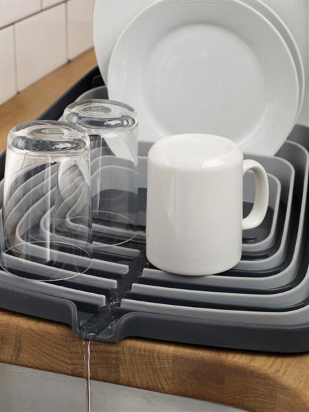 Nová koncepce odkapávače na nádobí dokáže odvádět přebytečnou vodu rychle a efektivně rovnou do odtoku vašeho dřezu.
