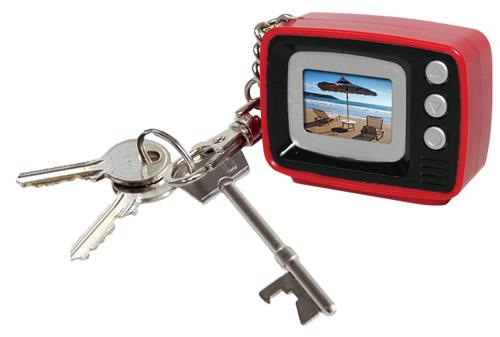 Fotorámečků pro digitální fotografie jsou opravdu mraky a málo z nich má nějaký zajímavý design. Proto nás nadhcl vzhled staré televize s funkčními tlačítky na přední straně. Tlačítka, která u televize slouží pro přepíná programů, u naší televize přepínají fotografie. Oproti předloze došlo u Retro Fotorámečku k výraznému změnšení rozměrů. Jesli máte doba obrovskou plazmu s úhlopříčkou 40", tak od teď se můžete chlubit také televizí s asi nejmenší úhlopříčkou na světě. Fotorámeček má úhlopříčku 1,1". V kvalitě vhodné pro zobrazení plnobarevném displeji se do fotorámečku vejde až 100 fotografií. Fotorámeček obsahuje také nabíjecí baterii, která se dobíjí pomocí USB kabelu, který je součástí balení a slouží také pro přenos fotografií. Po plném nabití můžete zobrazovat fotografie kontinuálně až 3 hodiny. Rozměry rámečku jsou 2 x 5 x 3.5 cm a je zavěšen na malé karabině, která se hodí pro zavěšení na klíče.