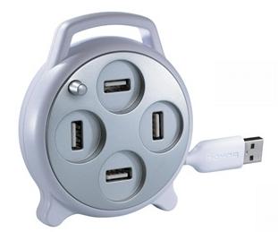Rotary HUB se kromě designu liší od všech ostatním hubů ještě něčím navíc. Retro ukládání kabelu, který má délku jednoho metru se provadí rotací portů kolem své osy a zatažením kabelu dovnitř hubu. Tohle zvládne Rotary při skvělých rozměrech 8 x 9 x 3 cm. Kabel je magneticky stíněný. Po zapojení Rotary k počítači získáte 4 volné USB porty. Není potřeba nic instalovat ani napájet z elektrické sítě.
