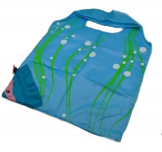 Rybičková nákupní taška Vám bude ráda dělat spolupracovníka při nákupech. Vypadá krásně jak ve složeném tak i v rozloženém tvaru. Taška se jednoduše rozkládá a zase zpátky skládá a je vyrobena z materiálu podobnému šusťáku.