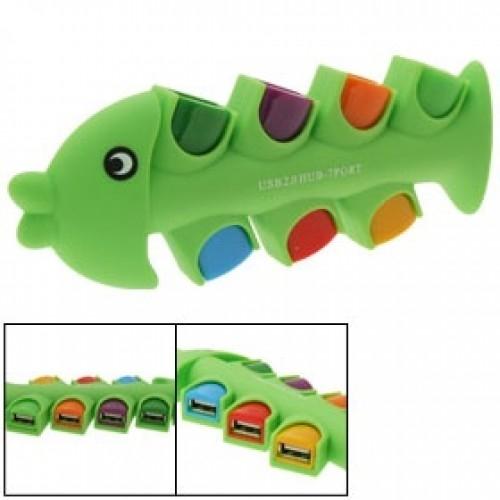 Sedmiportová rybka je jednoduchým HUBem s maximálním počtem volných portů. Po jejím zapojení je schopná připojit k Vašemu PC až 7 různých zaření. Skladná rybka má rozměry: 14 x 5.5 x 2 cm a hmotností 118 gramů. Balení obsahuje také připojovací USB kabel o délce 40 cm. Rybka podporuje USB 2.0 s rychlostí přenosu až 480 MB/s.