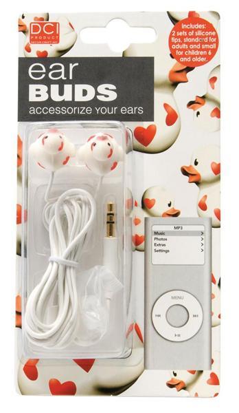 Nemusíte být zrovna infantilní na to, abyste si oblíbili tato sluchátka se zamilovanými kačenkami. Stačí, když máte rádi originální a stylové věci a kvalitní výrobky. Sluchátka vám přináší designová společnost Decor Craft Inc. Hodí se také jako dárek pro milovanou osobu.