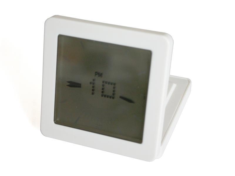 Solární Budík je jednoduchý a má o něco chytřejší napájení než by se zdálo. Obsahuje dvě malé baterie, které udržují čas i nastavení, když ho máte schovaný třeba v batohu, ale jakmile jej vyndáte na světlo boží, začne se dobíjet pomocí malého solárního panelu. Pokud je zavřený, jsou jeho rozměry: 7.5 x 7.5 x 1.5 cm.